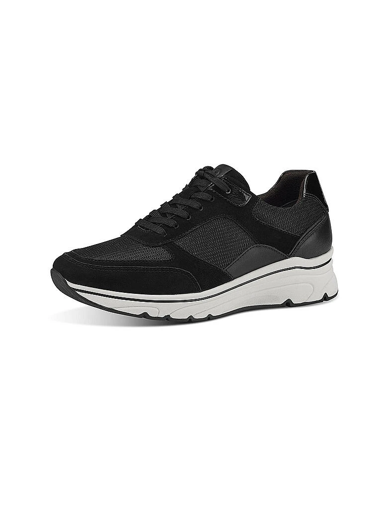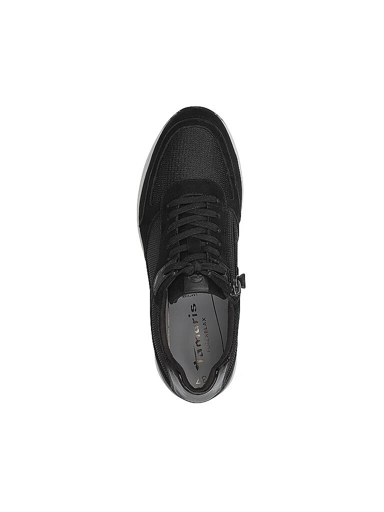 Die Modelle der Pure Relax-Kollektion von Tamaris zeichnen sich besonders durch hochwertige Materialien aus und wie der Name es schon verrät, durch Komfort. Der wird bei diesem Sneaker in einem natürlichen Beige-Grau durch die Relax Fit-Technologie des Fußbettes verliehen, das dir eine tolle Passform bietet und mit einer hautfreundlichen, austauschbaren Decksohle ausgestattet ist. Die erlaubt es dir, den Schnürschuh auch barfuß zu tragen. So kannst du dann auch das weiche Futter aus recyceltem Textil spüren, mit dem der Turnschuh ausgekleidet ist. Die schrittdämpfende Laufsohle ist flexibel und verläuft leicht keilförmig, was dir ein noch angenehmeres Tragegefühl verleiht. Optisch punktet der Damenschuh mit einem Obermaterial aus Leder und glitzerndem Mesh mit Metallic-Akzenten.
